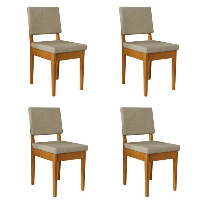 Kit 4 Cadeiras 100% Madeira Maciça Encosto e Assento Estofado Miami