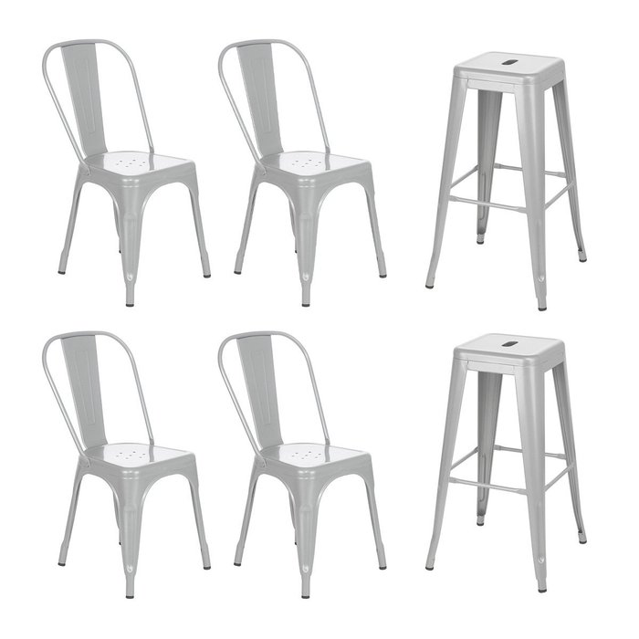 Kit 4 cadeiras + 2 banquetas altas industrial Loft Vintage Iron Tolix prata Prata -