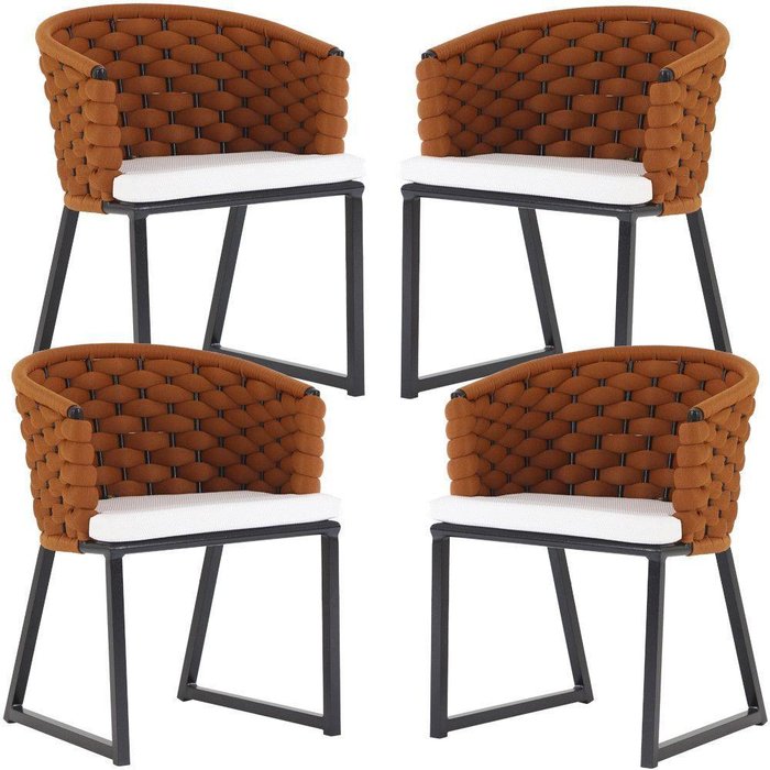 Kit 4 Cadeiras Bali Alumínio Em Tricô Náutico Mármore