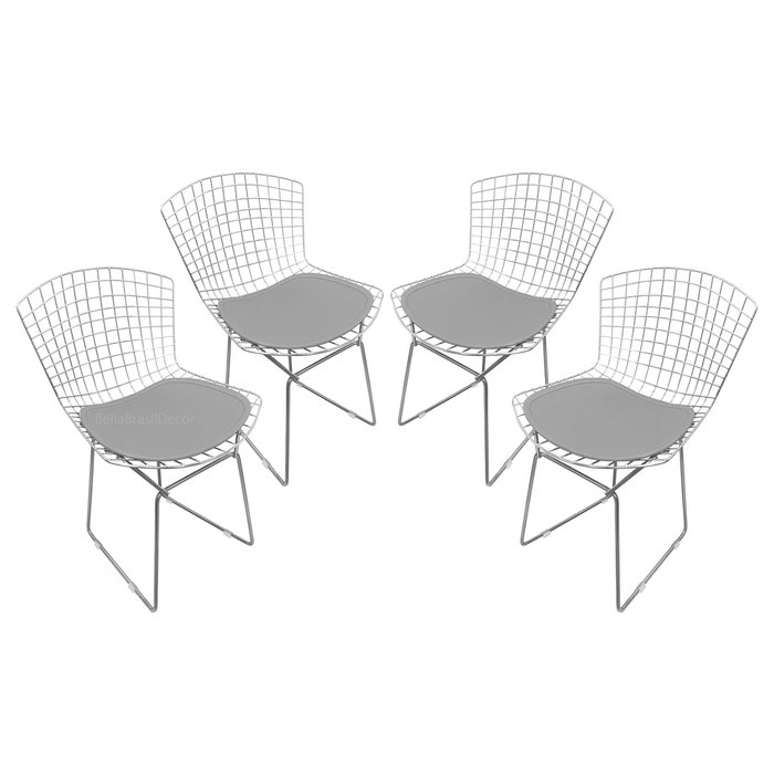 Kit 4 Cadeiras Bertoia Aço Inox com Assento - Várias Cores - Cinza Cinza