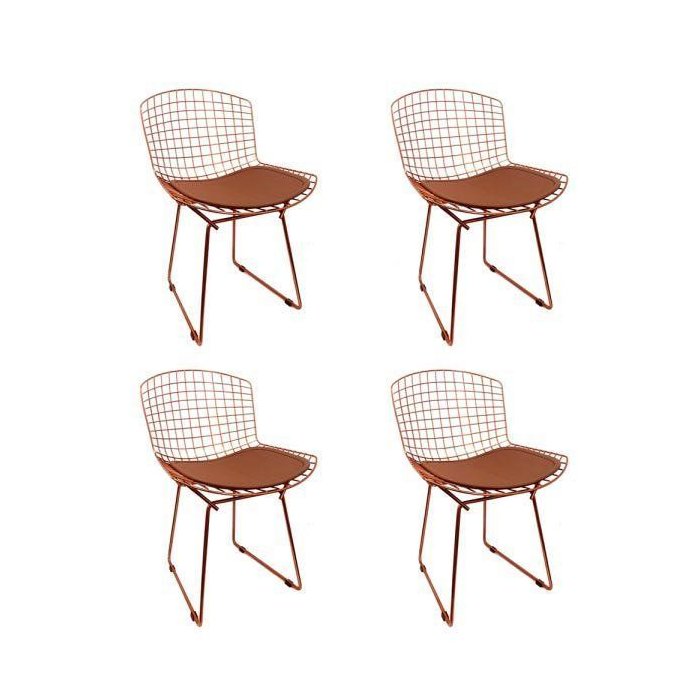 Kit 4 Cadeiras Bertoia Cobre com Assento Cobre