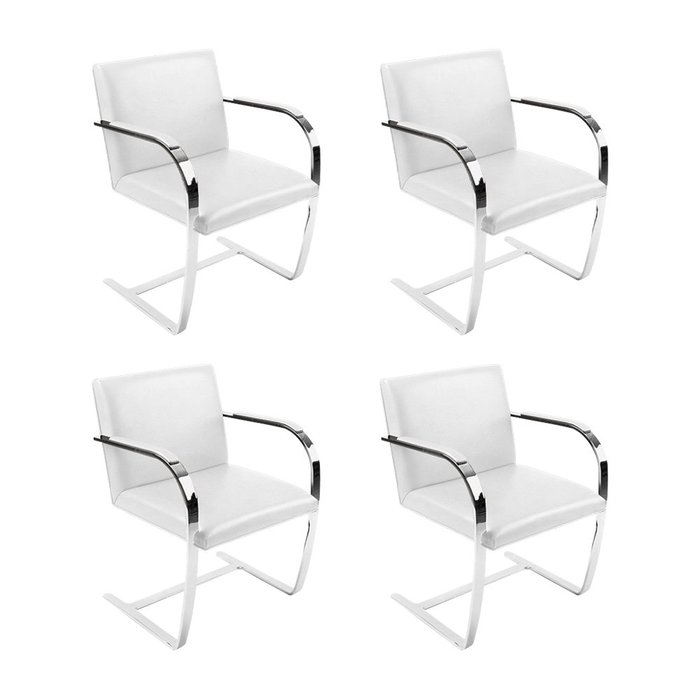 Kit 4 Cadeiras Brno Couro Natural Branco Barra Chata Cromada