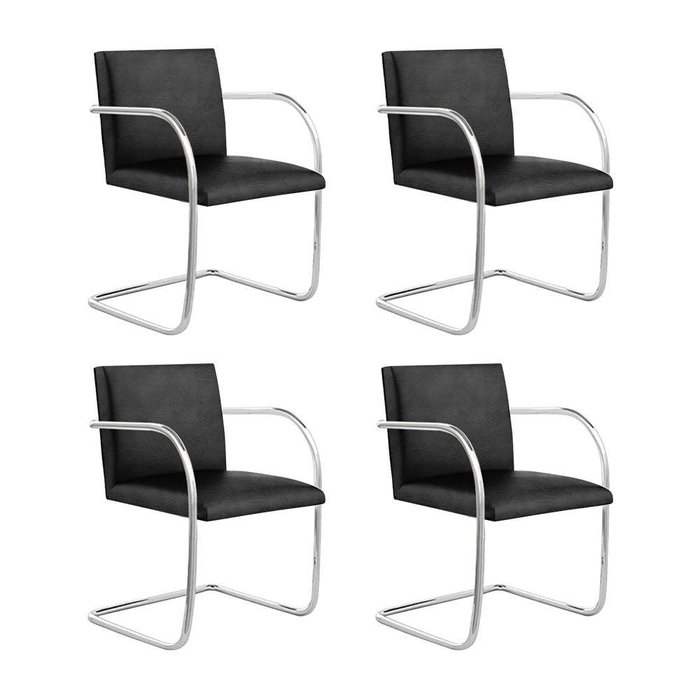 Kit 4 Cadeiras Brno Couro Natural Preto Tubular Cromada Cor Preto