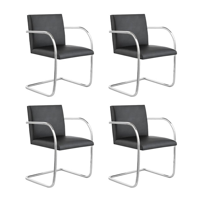 Kit 4 Cadeiras Brno para Escritório Couro Sintético Preto Tubular Cromada