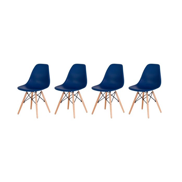 Kit 4 Cadeiras Charles Eames Eiffel Azul Marinho Base Madeira Sala Cozinha Jantar