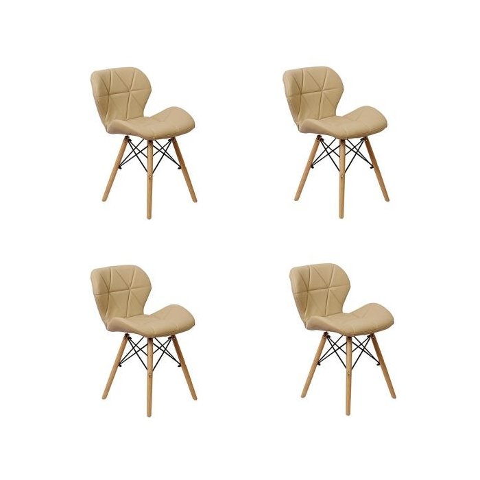 Kit 4 Cadeiras Charles Eames Eiffel Slim Wood Estofada - Nude