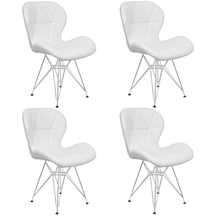 Kit 4 Cadeiras Charles Eames Slim Eiffel Base Metal Cromado - Branco Branco