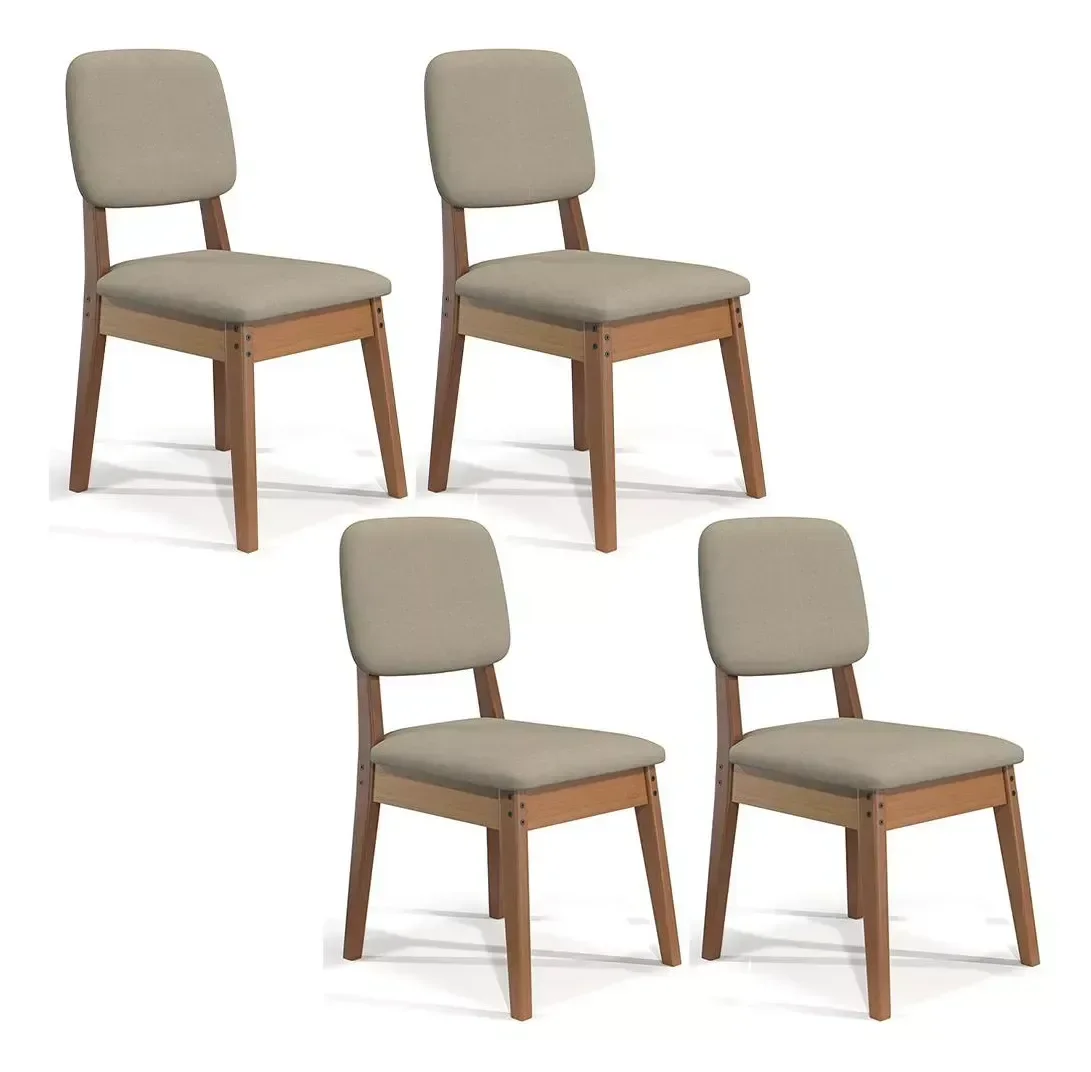 Kit 4 Cadeiras Classicas em Madeira Maciça e Estofado Linho:areia
