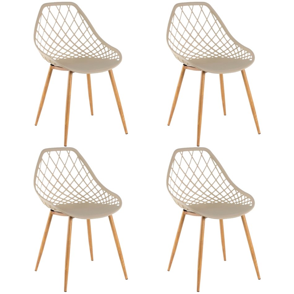 Kit 4 Cadeiras Cleo Cloe Clarice Web Jardim Assento Polipropileno - Bege Bege