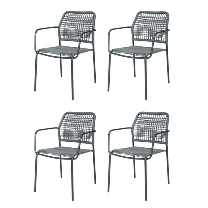 Kit 4 Cadeiras com Braços Empilhável Copacabana Fratini Aço Carbono Preto Trama Corda Náutica