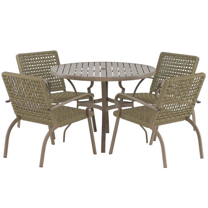 Kit 4 Cadeiras Corda Náutica e Mesa Tampo Ripado Varanda Alumínio Edícula Rami