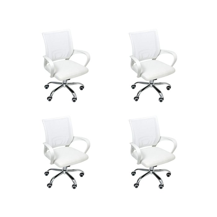 Kit 4 Cadeiras de Escritório Begonia Mesh Ergonômica Branco + E-book
