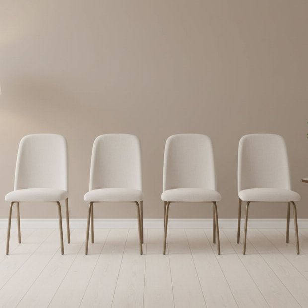 Kit 4 Cadeiras de Jantar Aço e Linho California Champagne