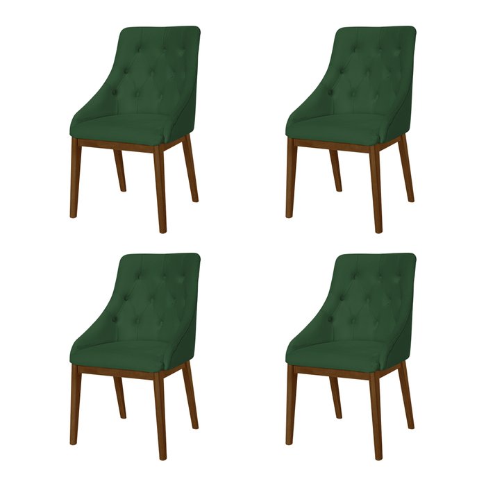 Kit 4 Cadeiras de Jantar Elisa Nobre Estofada Capitonê Veludo Verde Base Madeira Maciça Imbuia Verde