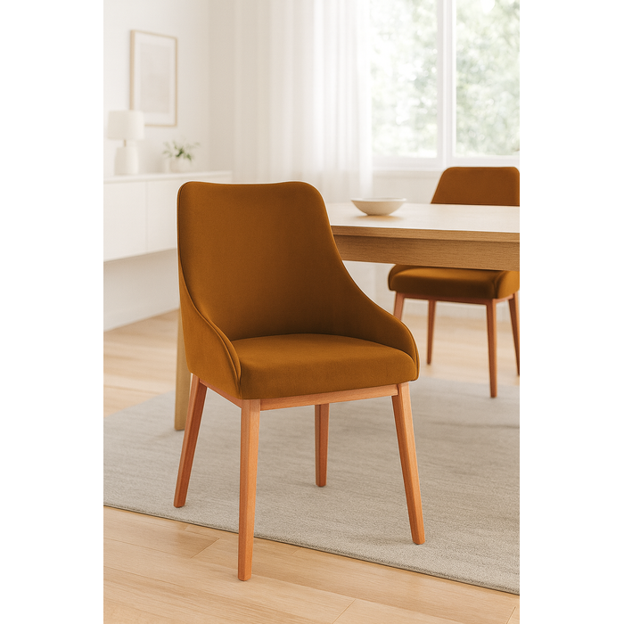 Kit 4 Cadeiras de Jantar Estofada Elisa Anatômica Veludo Terracota Base Madeira Maciça Mel