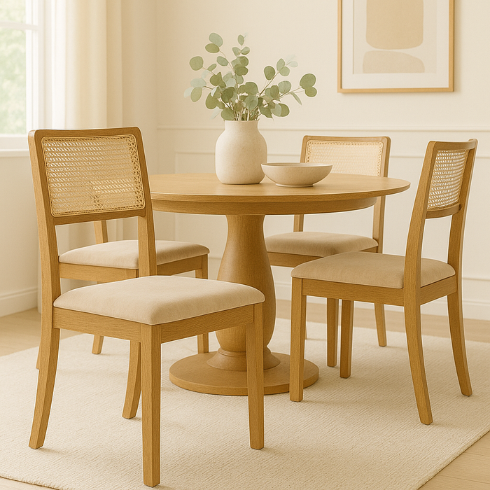 Kit 4 Cadeiras de Jantar Palha Estofadas Linho Bege Encosto Tela Sextavada Rubi Madeira Maciça Mel