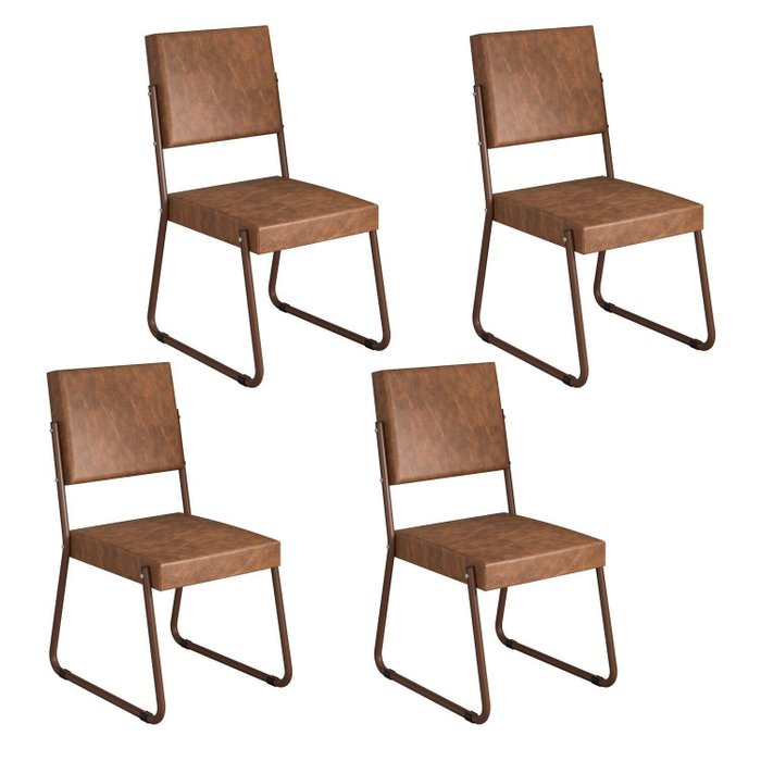 Kit 4 Cadeiras de Jantar Estofadas em Tecido Aço Marrom Napoli