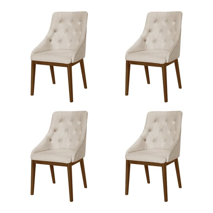 Kit 4 Cadeiras de Jantar Luxo Estofada Elisa Anatômica Capitonê Linho Bege Base Madeira Maciça Imbui