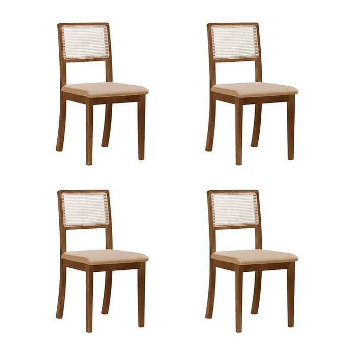Kit 4 Cadeiras de Jantar Palha Estofada Linho Bege Encosto Tela Sextavada Rubi Madeira Maciça Imbuia