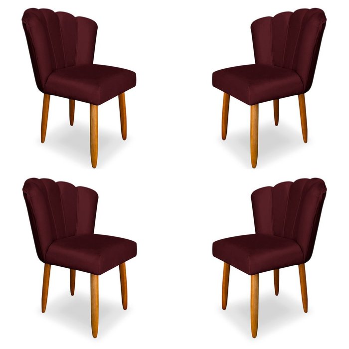Kit 4 Cadeiras de Jantar Pétala Estofada Pés Palito Veludo Bordô - Montanaris Decor