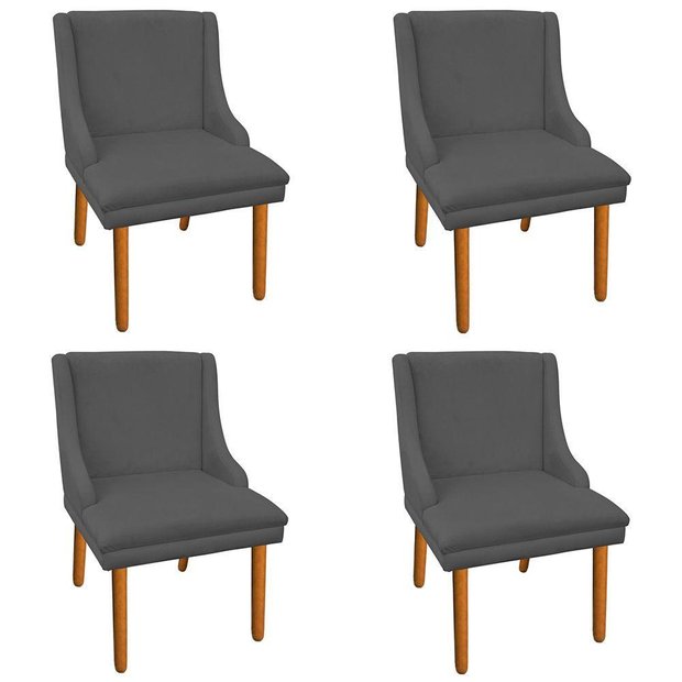 Kit 04 Cadeiras De Jantar Liz Suede Grafite Pés Palito Castanho D´rossi