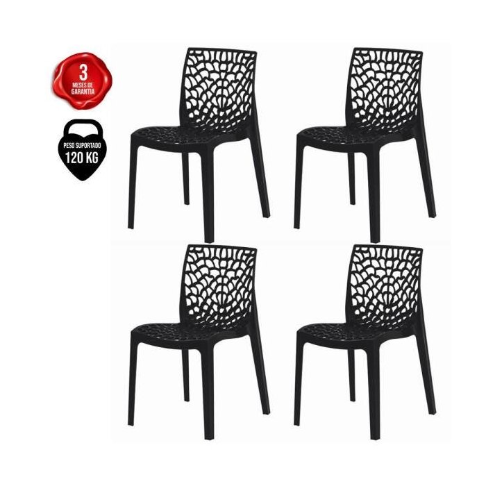 Kit 4 Cadeiras de Mesa Sala para Jantar Gruvyer Design Preta