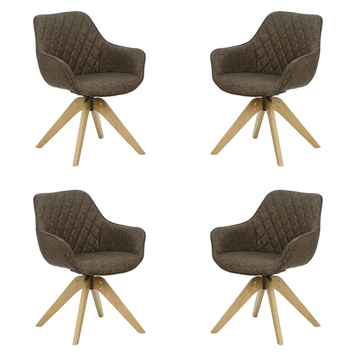 Kit 4 Cadeiras Decorativas Berkeley Pu Matelassê Sala de Jantar Base Giratória Madeira Café G56 - Gr