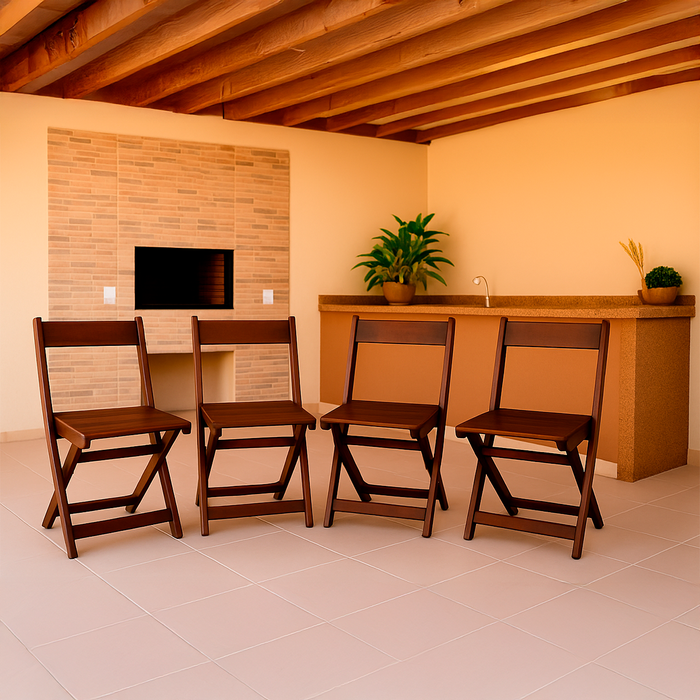 Kit 4 Cadeiras Dobráveis de Madeira Eucalipto Natural: Imbuia