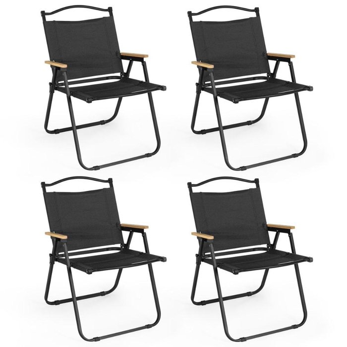 Kit 4 Cadeiras Dobráveis de Praia e Acampamento Ultra Leve em Tecido e Metal - Preto Preto
