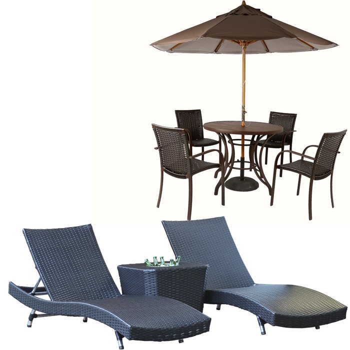 Kit 4 Cadeiras e Mesa Ascoli, 2 Espreguiçadeiras Bona e Mesa com Ombrelone Piscina, Jardim, Área Tra Preto