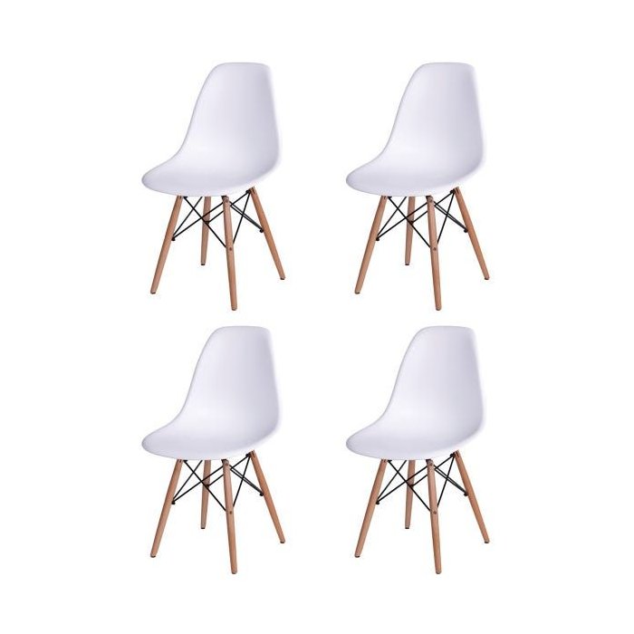 Kit 4 Cadeiras Eames Design Base Madeira Assento Branco Branco