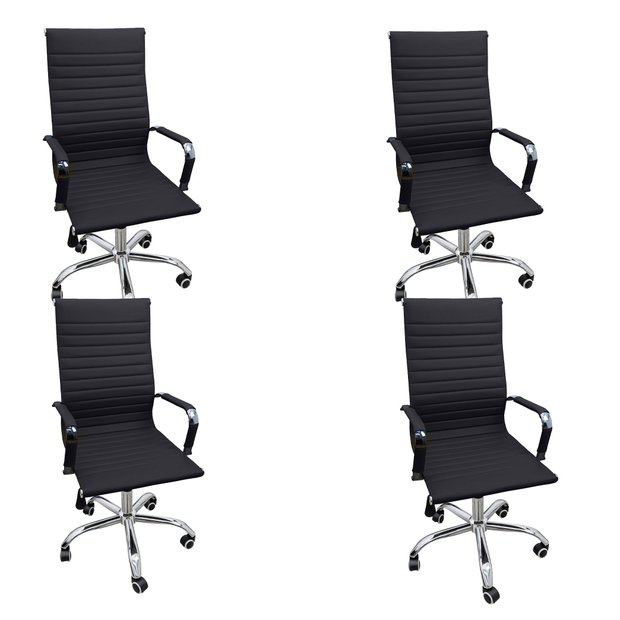 Kit 4 Cadeiras Eames Esteirinha Presidente Escritório Alta Preta
