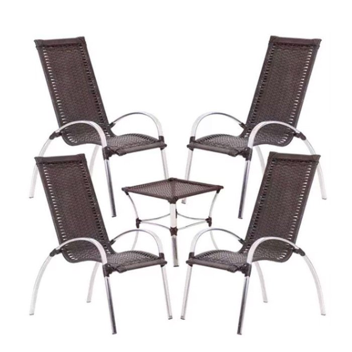 Kit 4 Cadeiras em Alumínio Varanda Piscina Externa e Mesa de Marrom