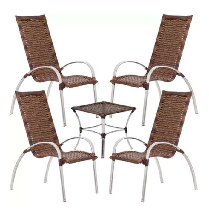 Kit 4 Cadeiras em Alumínio Varanda Piscina Externa e Mesa de Centro Garden em Alumínio Trama