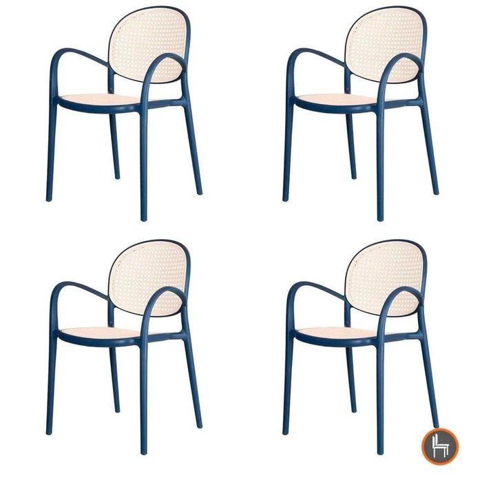 Kit 4 Cadeiras Empilhável Portofino Fratini Polipropileno Cor Azul E Assento Simulando Palha Natural