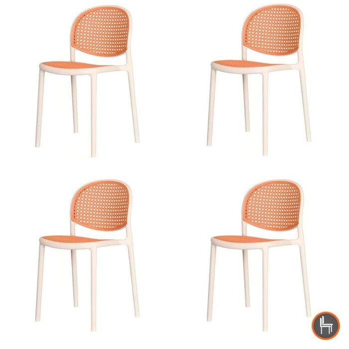 Kit 4 Cadeiras Empilhável Positano Fratini Polipropileno Cor Nude E Assento Simulando Palha Rattan