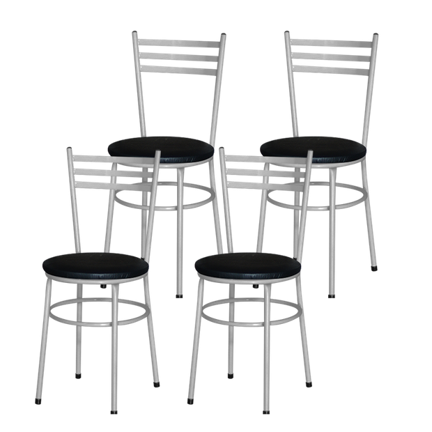 Kit 4 Cadeiras Epoxi Cinza para Cozinha: Preto Preto