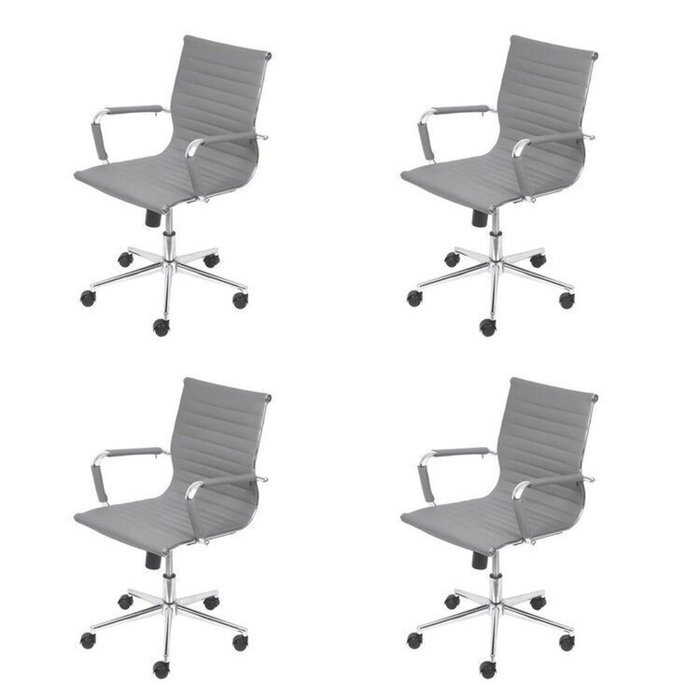 Kit 4 Cadeiras Escritório Diretor Esteirinha Rodízio Relax Corino 3301 Cinza