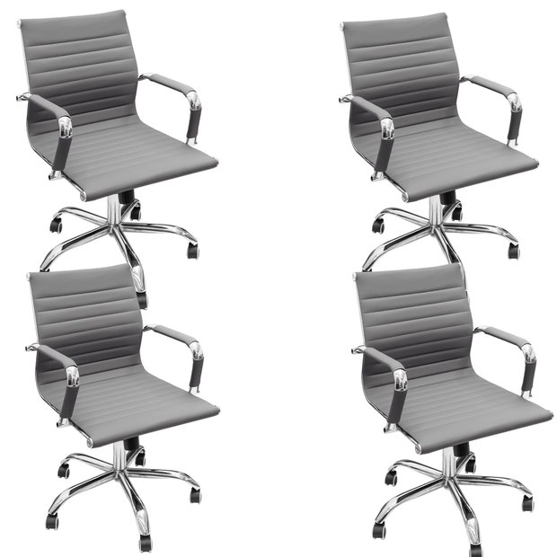 Kit 4 Cadeiras Escritório Diretor Esteirinha Rodízio Relax Corino 3301 Preto Preto