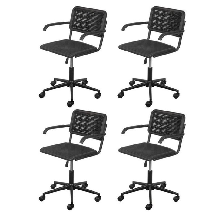 Kit 4 Cadeiras Escritório Palhinha com Braço e Base Rodízio Cesca