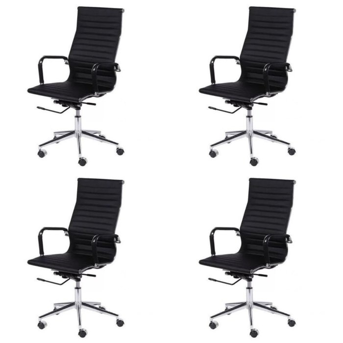 Kit 4 Cadeiras Escritório Presidente Esteirinha Rodízio Relax Corino 3301 Preto