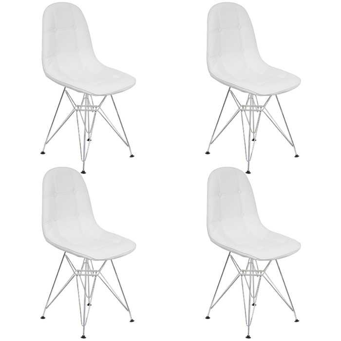 Kit 4 Cadeiras Estofadas Charles Eames Eiffel Botonê com Pés de Metal Cromado Branco Multicolorido Branco