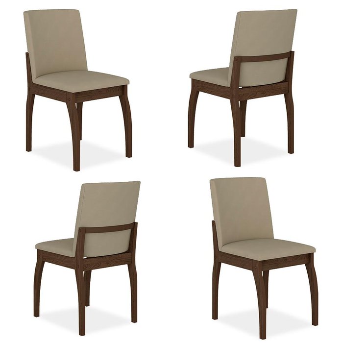 Kit 4 Cadeiras Estofadas Sucre Imbuia/veludo Bege - Móveis Arapongas Imbuia/veludo Bege