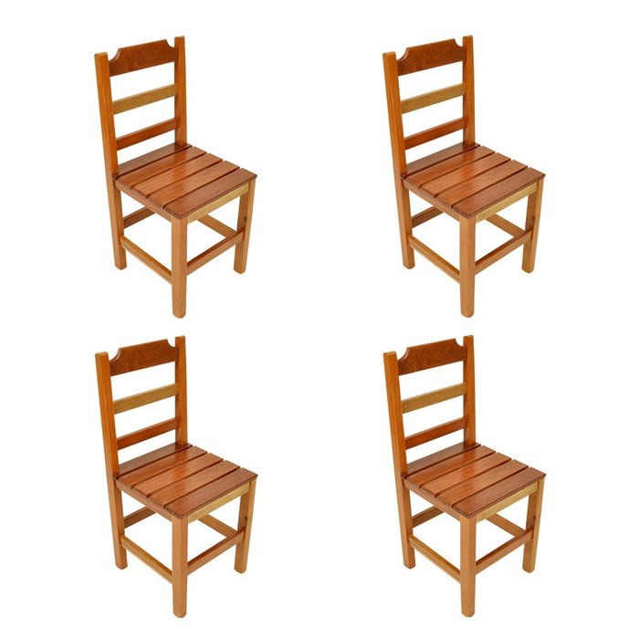 Kit 4 Cadeiras Fixa de Madeira Paulista com Assento Ripado Natural