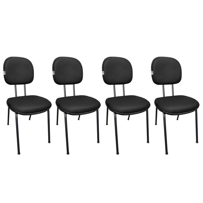 Kit 4 Cadeiras Fixa para Escritório Pé Palito Secretaria Courvin Sintetico Preto Recepção Igrejas