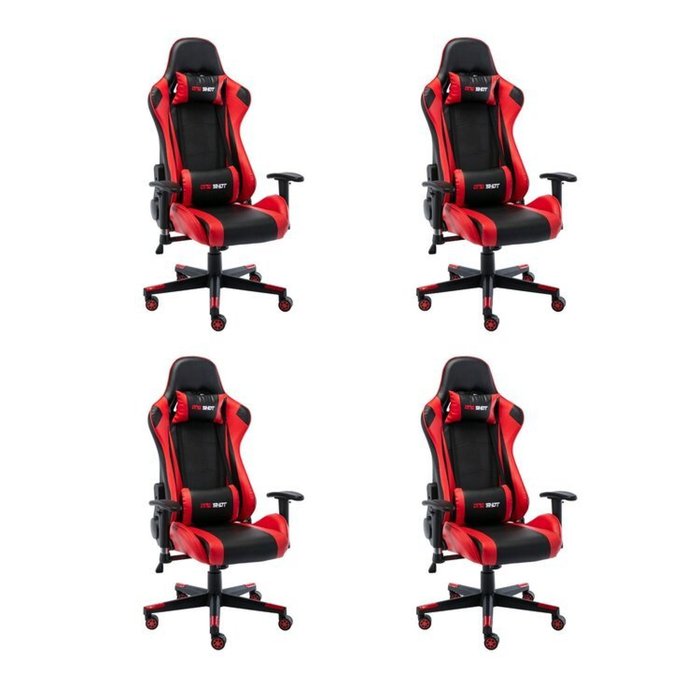 Kit 4 Cadeiras Gamer Giratória One Shot Preto/Vermelho