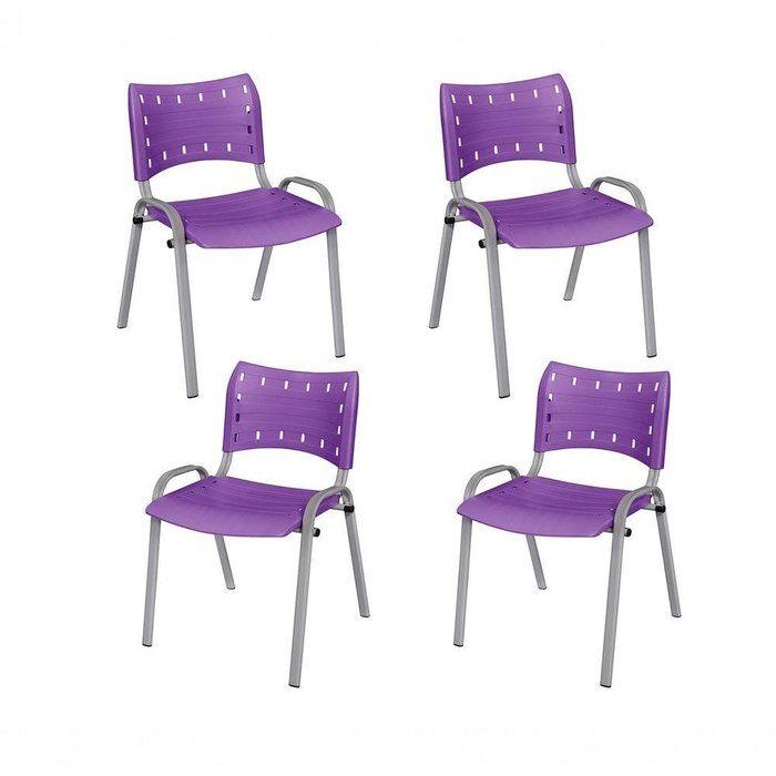 Kit 4 Cadeiras Iso Fixa Plástico Empilhável Tubo Oblongo Cor Lilás-iso
