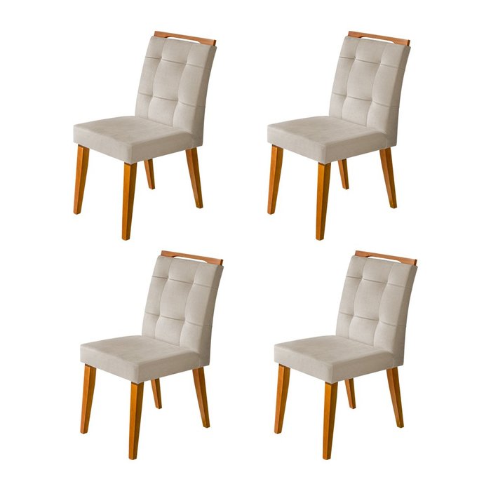 Kit 4 Cadeiras Jantar Luxo Agatá Estofadas Veludo Bege com Alça Madeira Maciça Mel