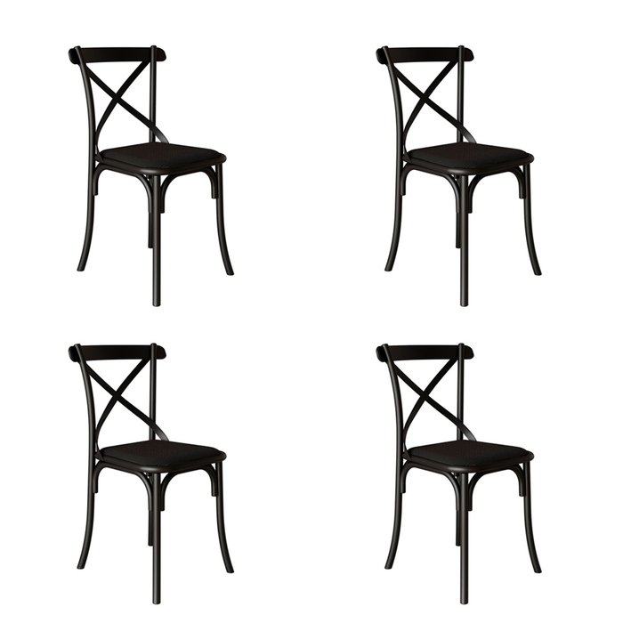 Kit 4 Cadeiras Katrina Premium Assento Corano Preto Aço Preto