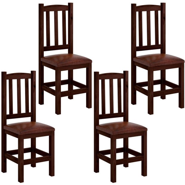 Kit 4 Cadeiras Madeira Maciça Estofado Corino Marrom Diamante Cor Castanho Nemargi